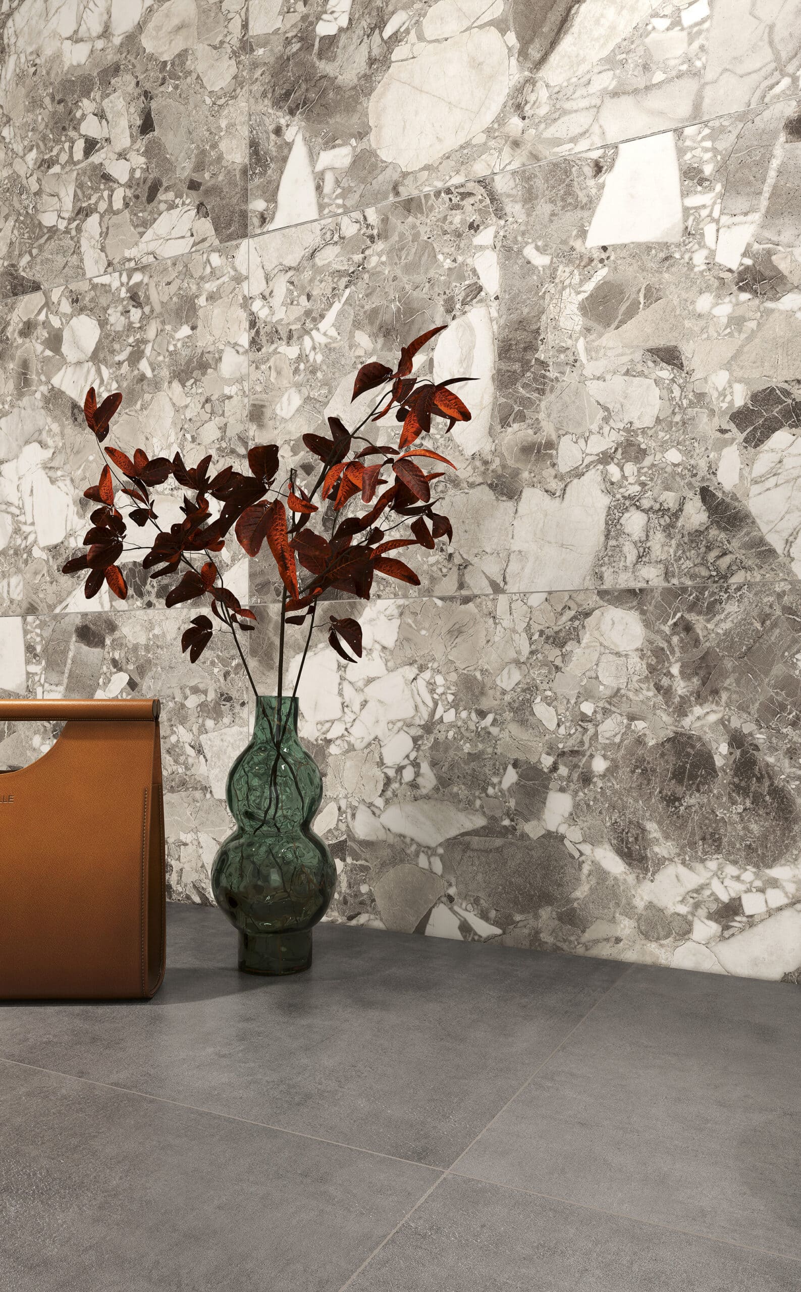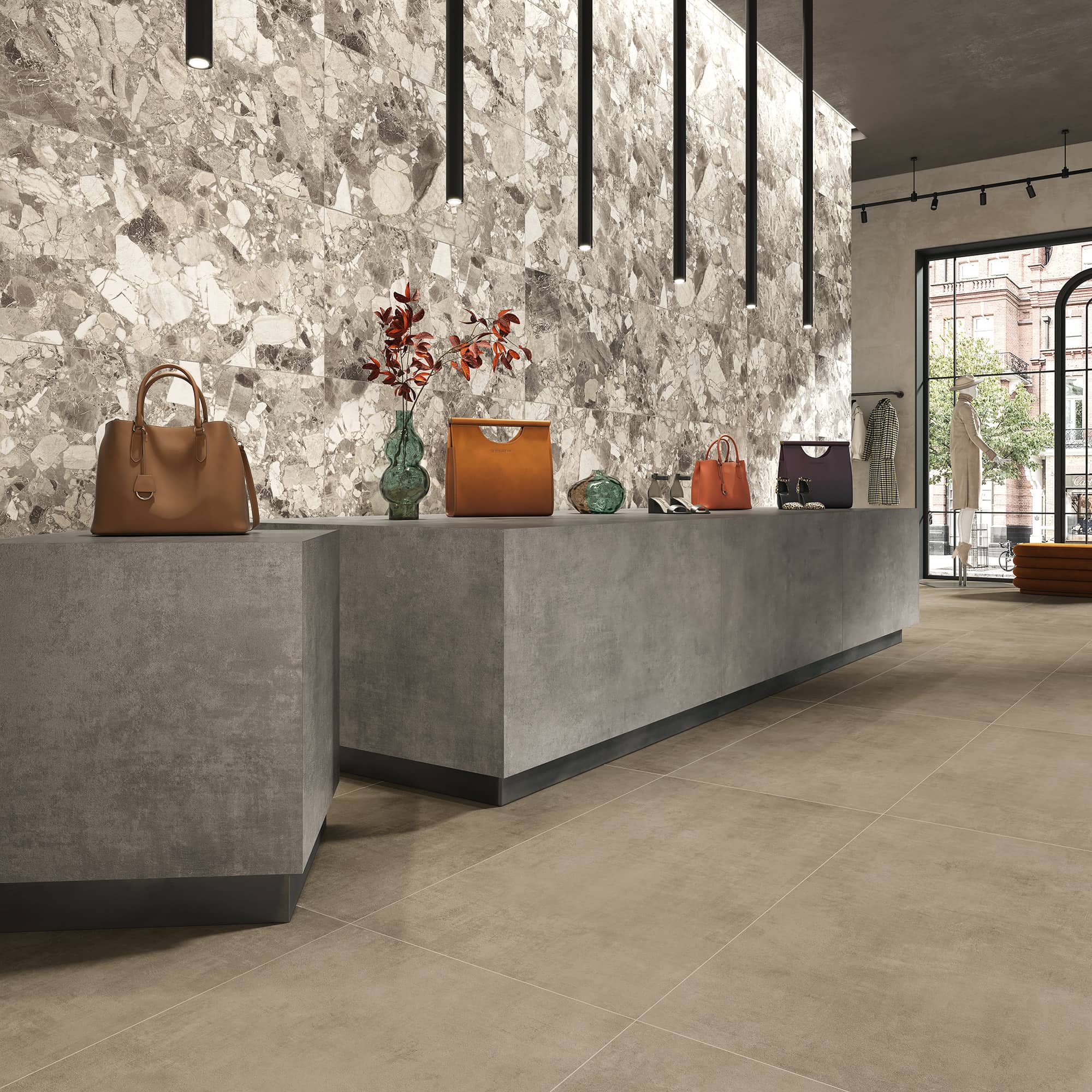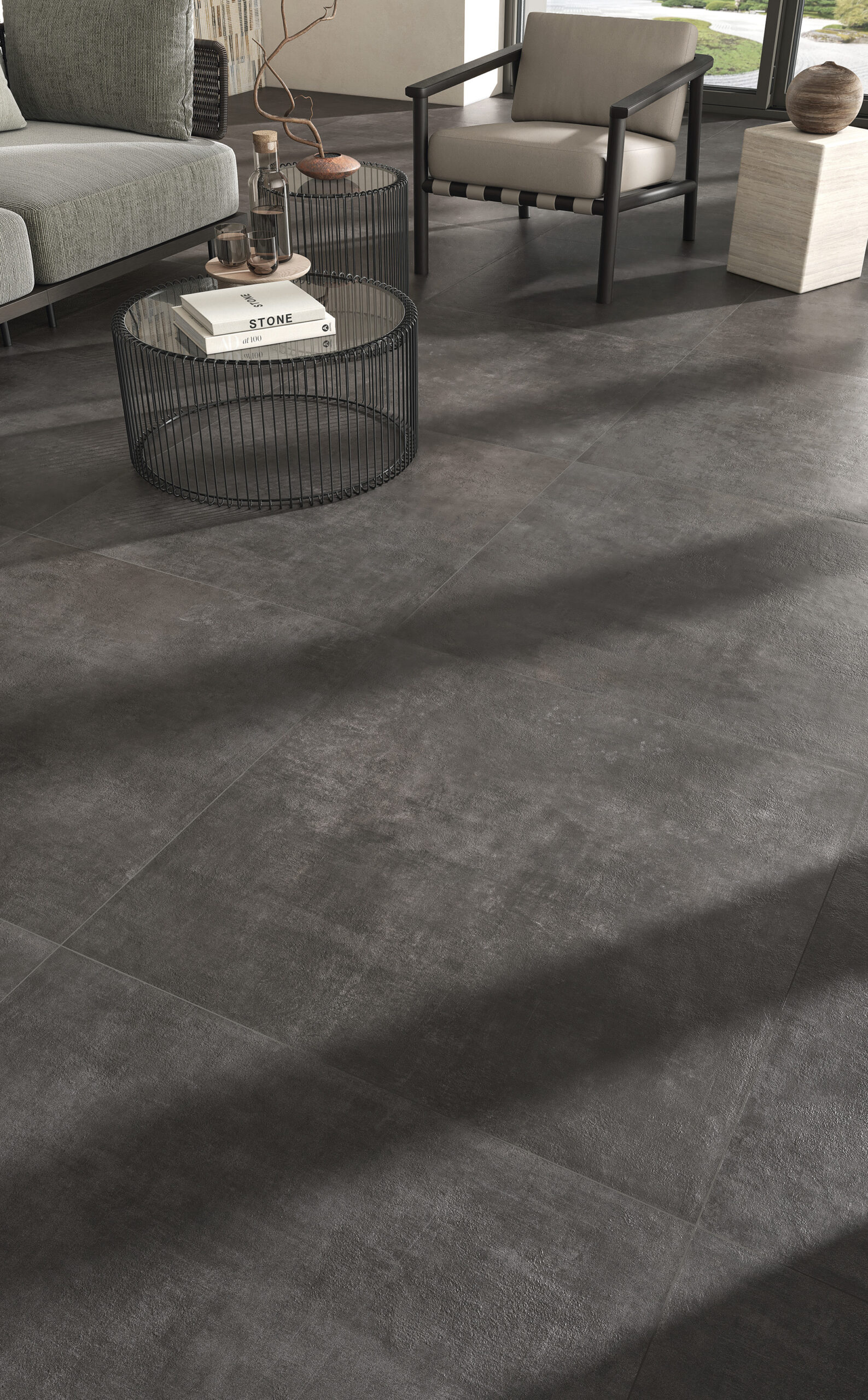Concrete získává svou výraznou identitu díky jemné a smyslné barevnosti. Materiál dává vzniknout unikátním a univerzálním odstínům, které lze kombinovat s dalšími produkty s různými efekty. Kolekce nabízí 6 barev a různé formáty: 120×120, 90×90, 60×120, 60×60 a 30×60 cm, s tloušťkou 9 mm a 20 mm. Tím vzniká vizuální kontinuita mezi stěnami a podlahami v interiérech i exteriérech.