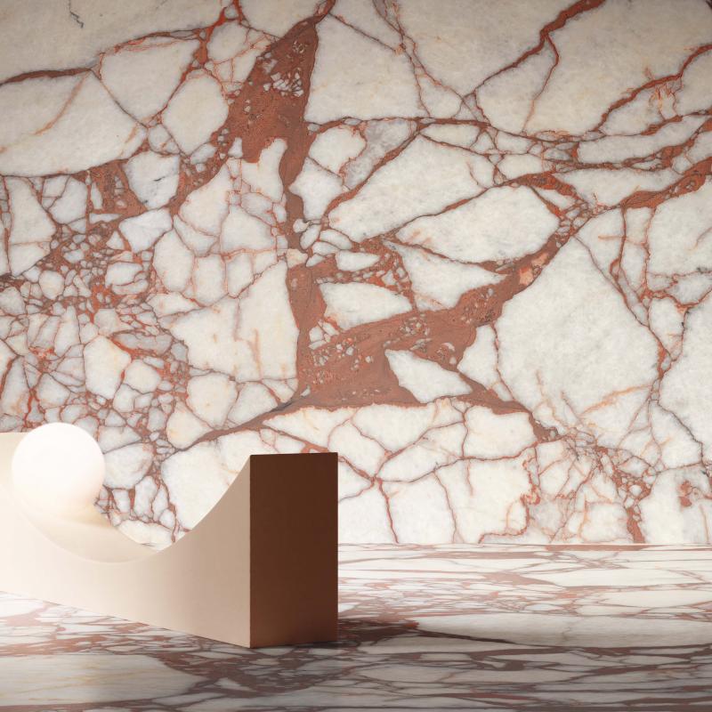 Design kolekce stojí na pečlivě vybraných vzácných druzích mramoru, které doplňují onyxové povrchy a výrazné barevné křemenity. Tyto materiály přinášejí do prostoru hloubku, energii a jedinečný charakter. Barevná rozmanitost i propracovaná kresba umožňují vytvářet originální interiéry, kde se přirozeně propojují různé styly, textury a materiály.
