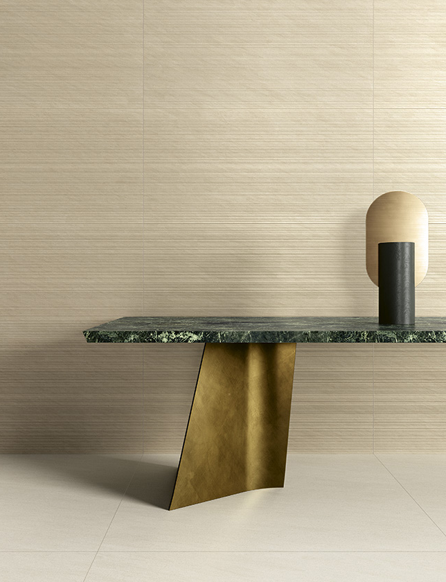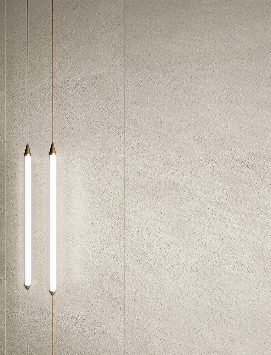 Struktura povrchu vzniká v dokonalé souhře designu a technologií. Precizní zpracování spojuje elegantní vzhled s čistými liniemi současného stylu a vytváří vyvážený, kultivovaný povrch. Kolekce působí klidně a harmonicky, zároveň však nabízí dostatek charakteru pro moderní interiéry i architektonicky náročné projekty.
