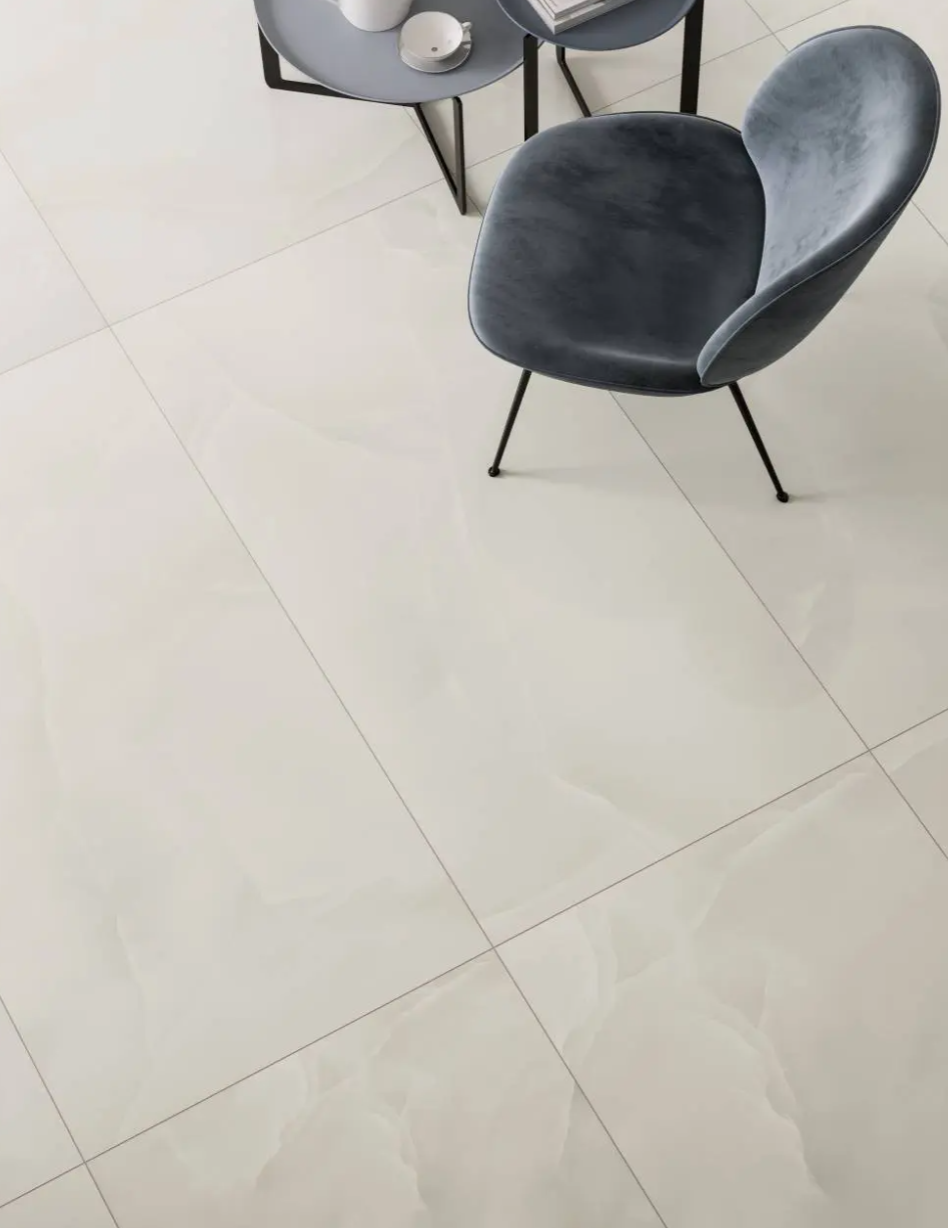 Keramická dlažba imitace onyxu se hodí do moderních obytných i komerčních prostor. Povrch dlaždic kombinuje intenzivní kontrasty a elegantní barevné přechody, které doplňují minimalistický, luxusní i klasický design. Světelné odrazy na lesklém povrchu dodávají interiérům dynamiku a zdůrazňují architektonické detaily.