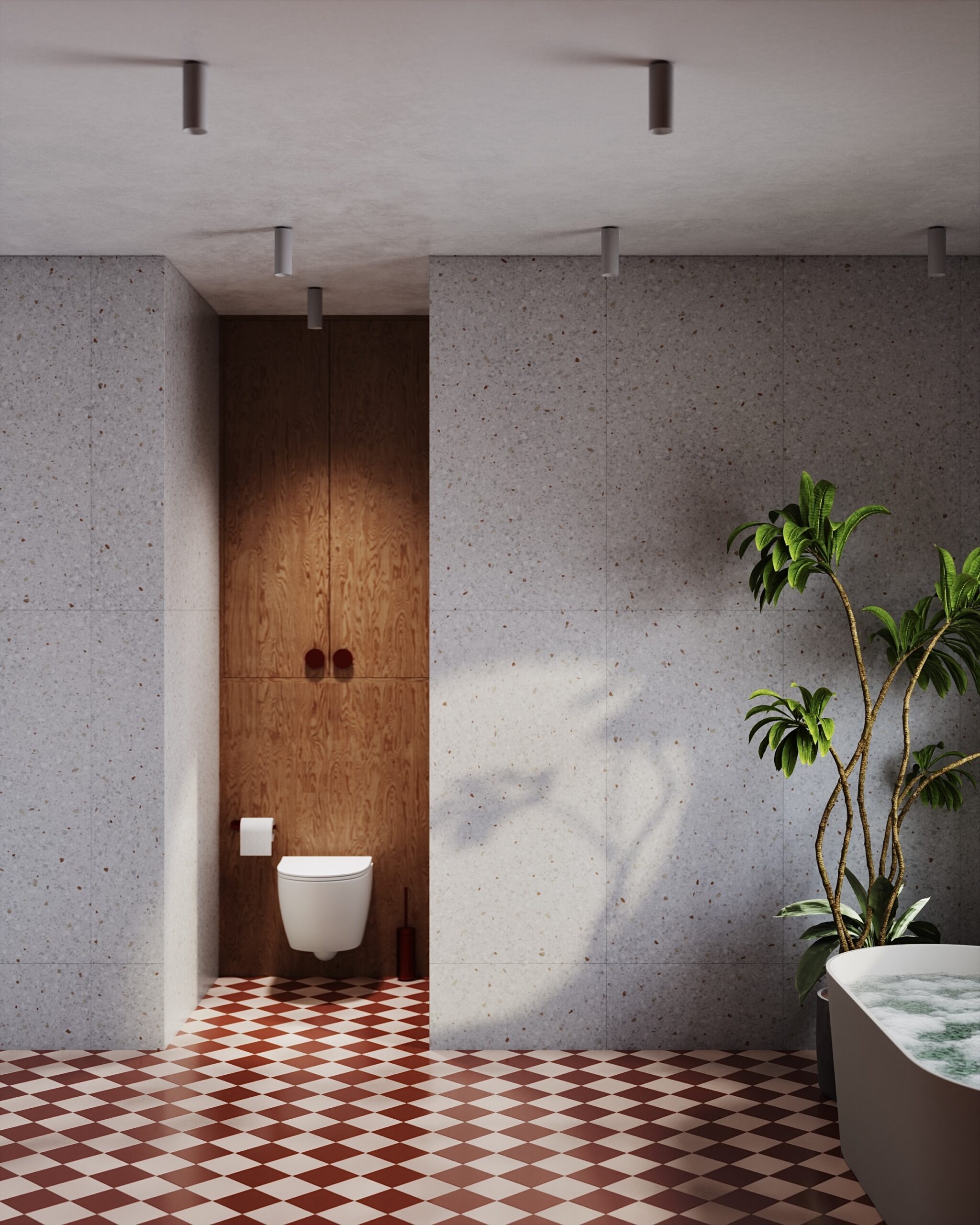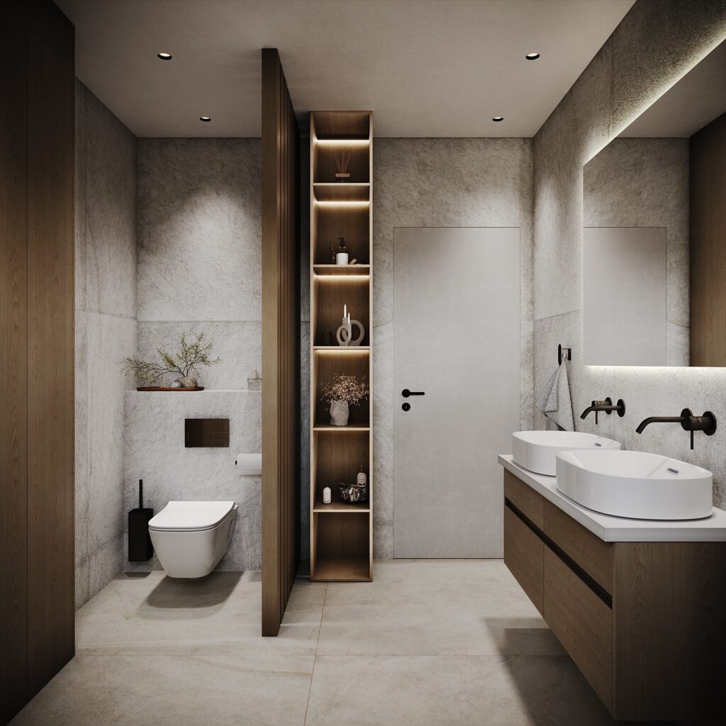 Vizualizace se povedle ihned napoprvé, nepotřebovala žádné úpravy. Není nad to, otevřít dveře koupelny nevidět na první dobrou toaletu. Koupelna je již zrealizována našimi obkladači a výsledný efekt je téměř totožný s vizualizací. Majitelé jsou nadšeni a my také. Děkujeme.