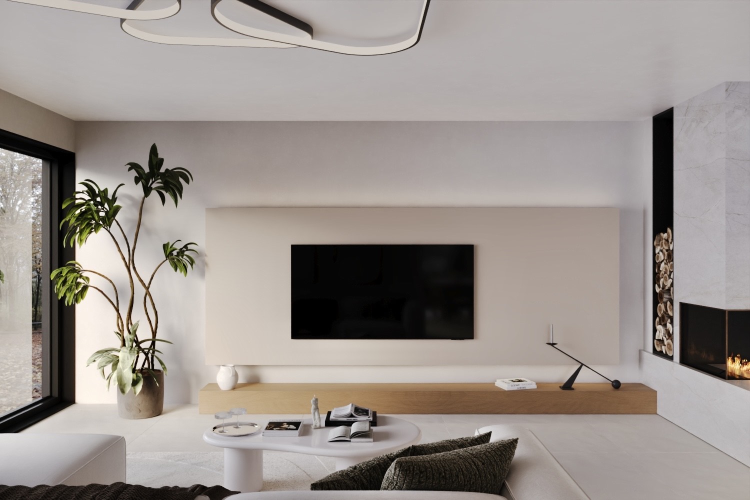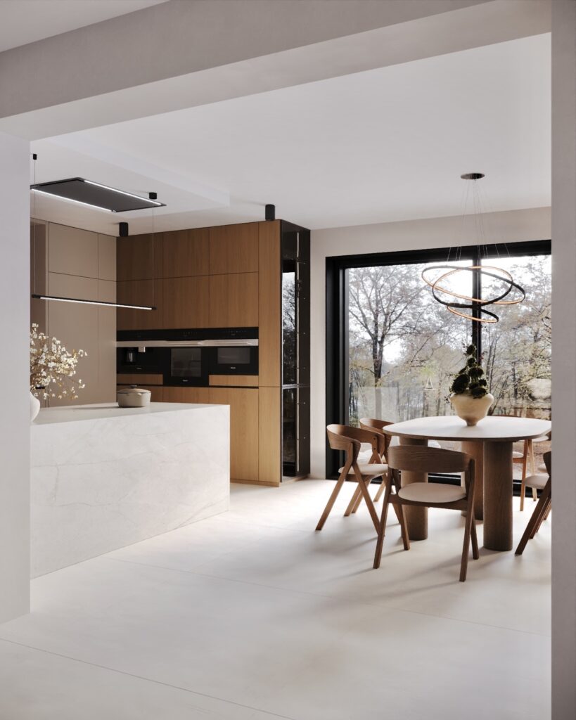 Náš oblíbený projekt. Sen každého kachlového spotu. Dům v přírodních tónech s klidným a nadčasovým vibem plný světla, kterému dominují kachle, žádná jiná podlahová krytina.