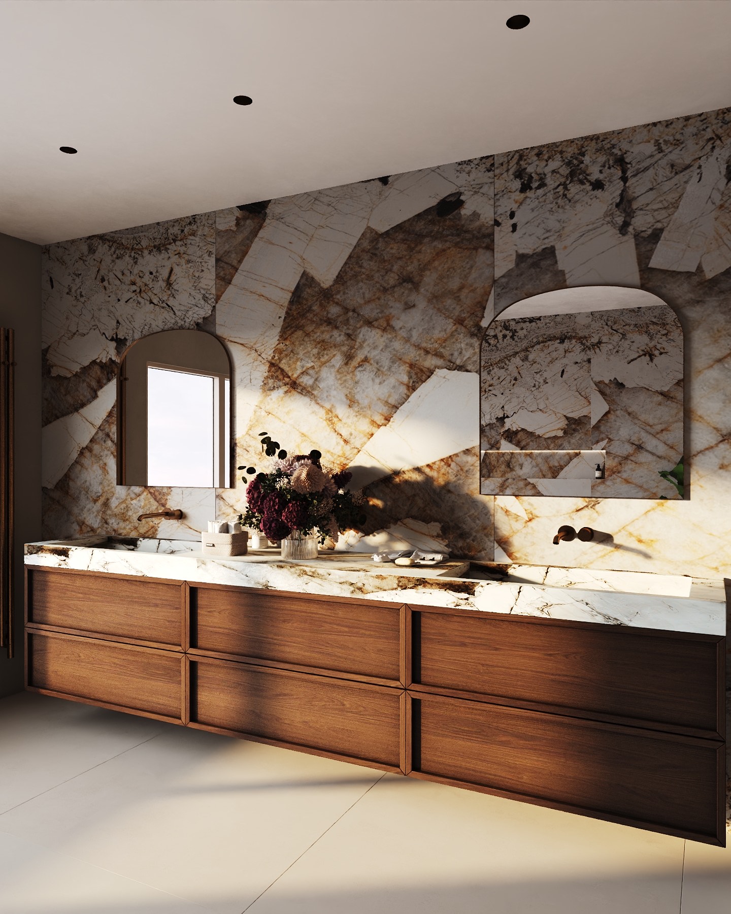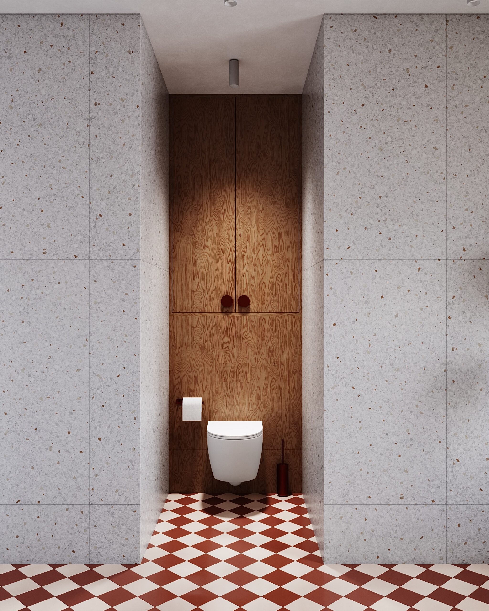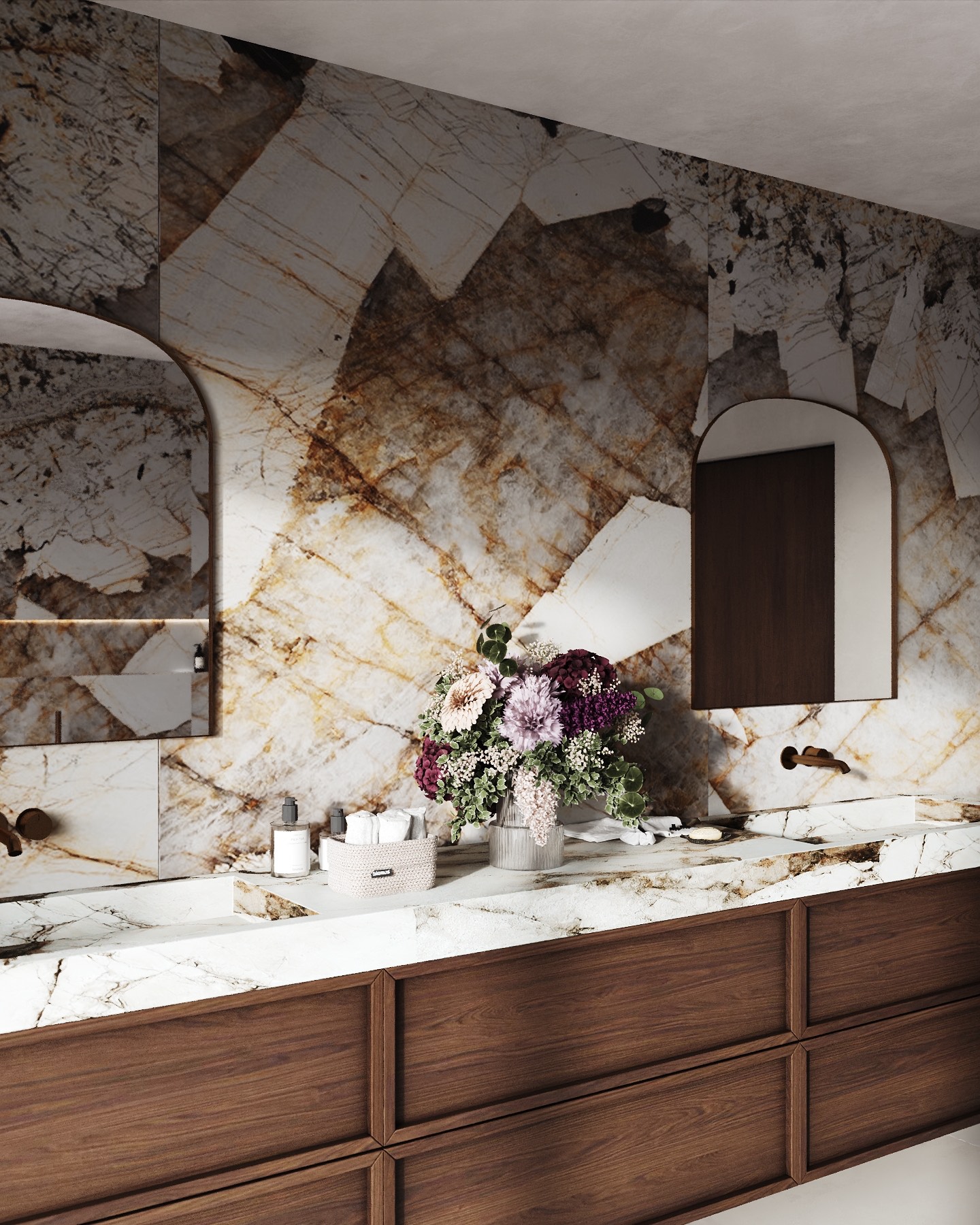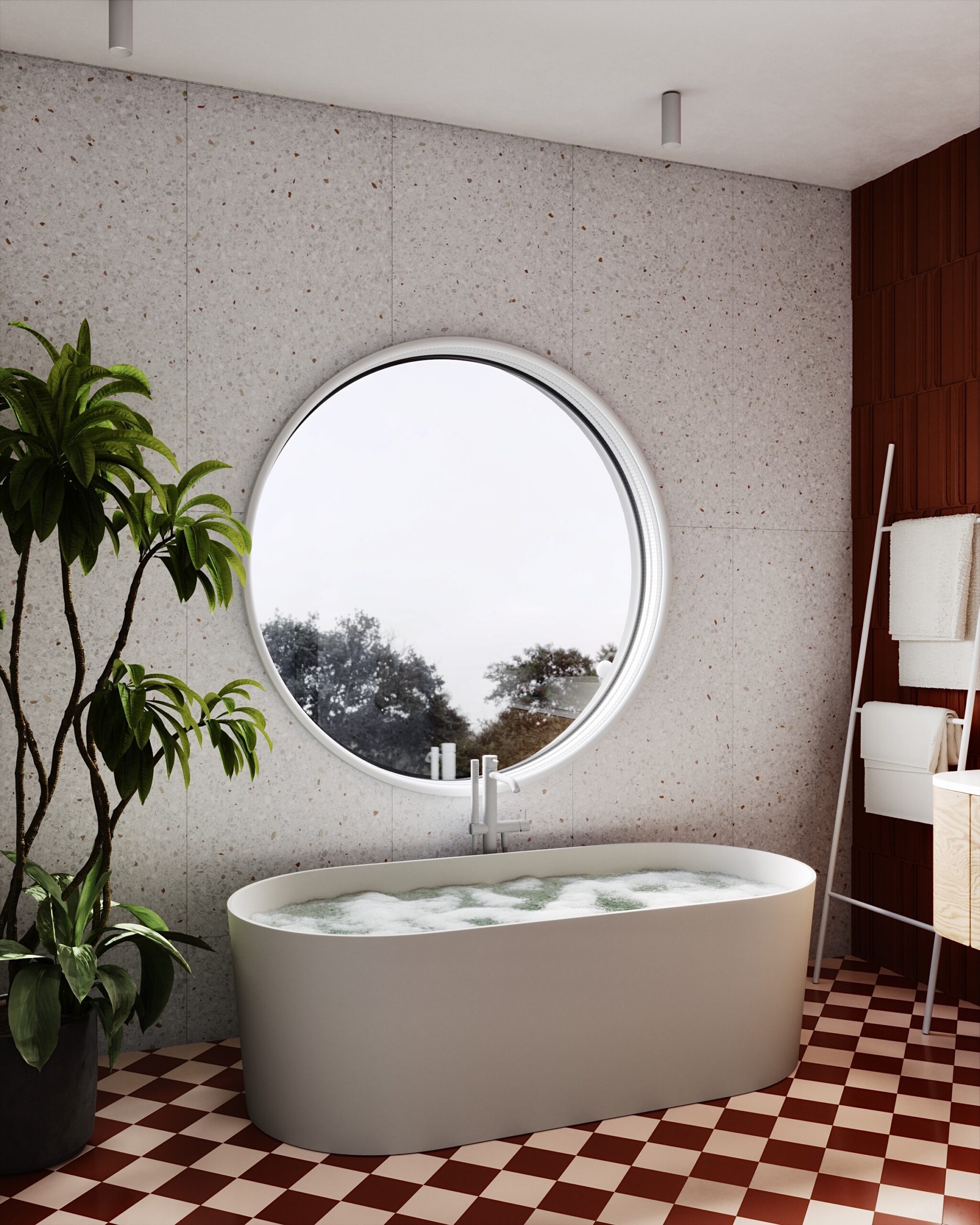 Paní majitelka toužila po výjimečné koupelně. Je milovnicí terracota odstínů, retro prvků a oblých tvarů. A my měli volnou ruku.